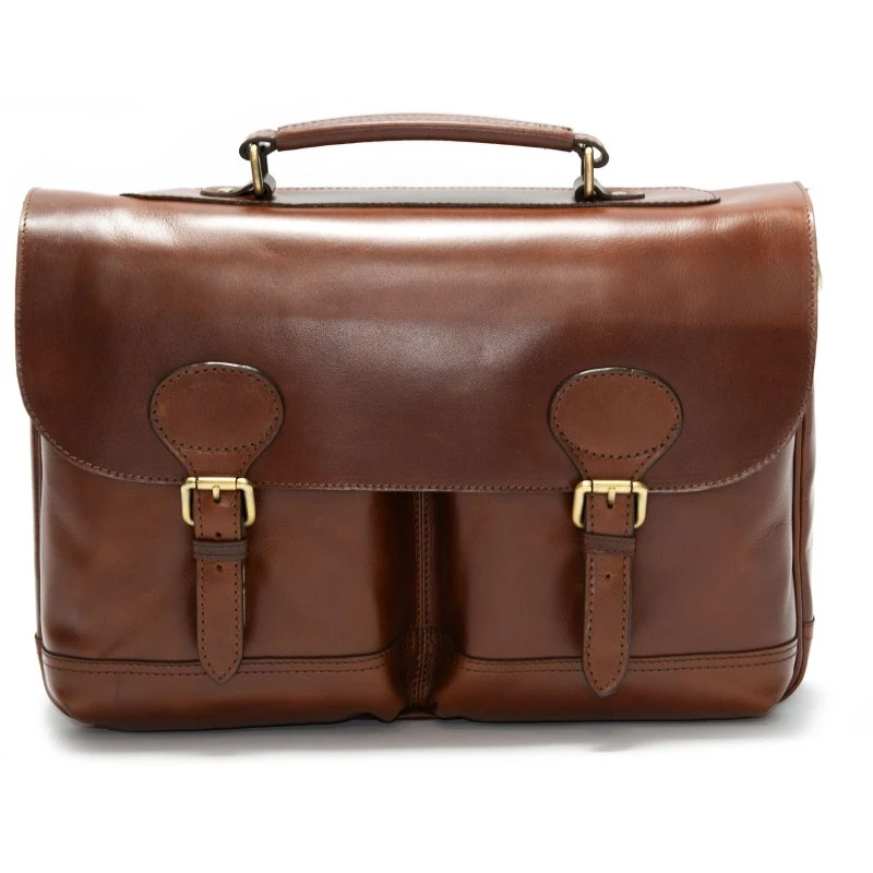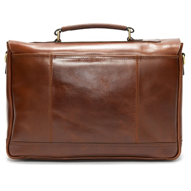Archway is a briefcase in a rich leather that ages beautifully. It features a carry handle, detachable shoulders strap and a full width pocket on the outside. The flap is lined with suede and covers two front pockets with slide fastenings. The outside pockets also feature subdivisions for pens, phones etc. There is also a full width zip pocket. Inside the main body of the bag there is a padded area ideal for a laptop upto 15 inches and another cotton lined compartment with a partial pocket. Â Please note that as a deeply tanned and richly finished leather product there can be colour rub-off when using the bag. Please bear that in mind as we cannot be liable for any staining or discolouration of clothing as a result of wearing or carrying the bag. Product dimensions are approximately 30cm high x 42cm wide x 14cm deep and weighs around 1.9kg when empty including the shoulder strap. |