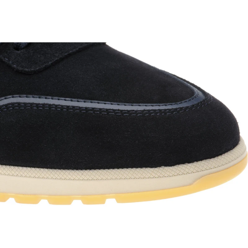 Dunsfold is a beautiful trainer style using a classic combination of suede and calf to create something a bit more interesting than your average shoe. They are handmade for us in the Caros Santos factory in Portugal so you know this is made to exceptional standards. Please note that the bottom edge of the sole is slightly translucent and looks paler than in normal lighting due to our flash photography. Please note the nap of the suede will affect the shade you see when the product arrives. The images here are a guide only. |
