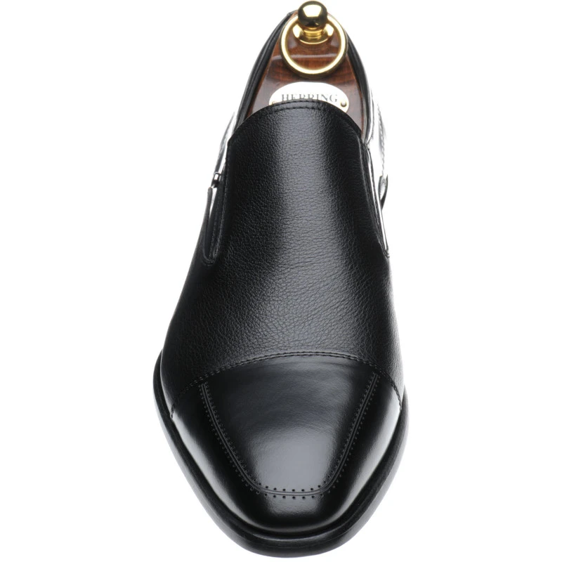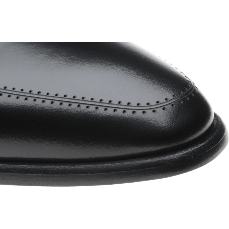 Frederick is a slip-on formal shoe with a polished leather toe-cap. It isn’t easy to find a shoe that is easy to put on, has a polished and formal appearance and is also comfortable. We only have a few slip-on formal shoes and this is the easiest to wear, with a lovely soft grain upper, thin blake-stitched soles for a smart appearance and great flexibility and lightness. Please note the sole is coloured for the fully bespoke look but this dye can transfer onto surfaces if you are not careful. We cannot be held liable for any staining. To minimise the risk do not wear wet shoes on fabric floor coverings and be aware that very hot feet can sweat and make the sole damp and cause the dye to mark. In usual wear this is not a problem so we just urge you to be aware and act accordingly. |