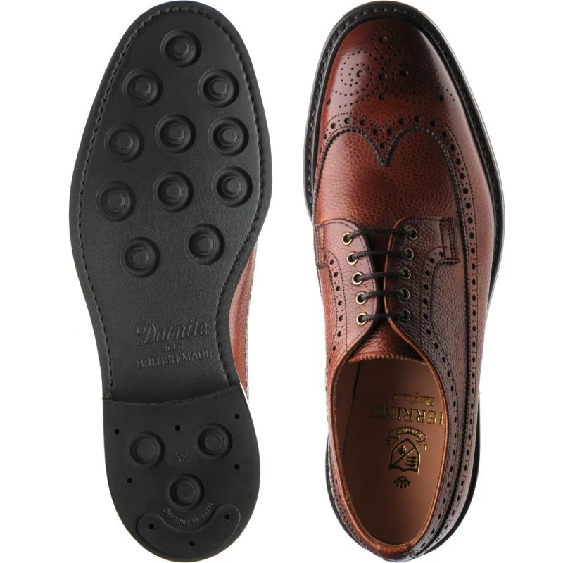 Herring Grassmere II is an evolution of our Grassmere rubber-soled longwing brogue, on a new last shape that gives it a slightly more formal appearance owing to it’s narrower front. It is still a country style, offering a generous amount of space, but the less rounded toe gives this a more modern look that suits it very well to town as well as country wear. This luxurious shoe is handmade in the Cheaney factory for us in Northamptonshire. This Classic last shape with its rounded toe is a staple of any man’s wardrobe. This is a standard fitting shoe so you can confidently order your normal UK size. |