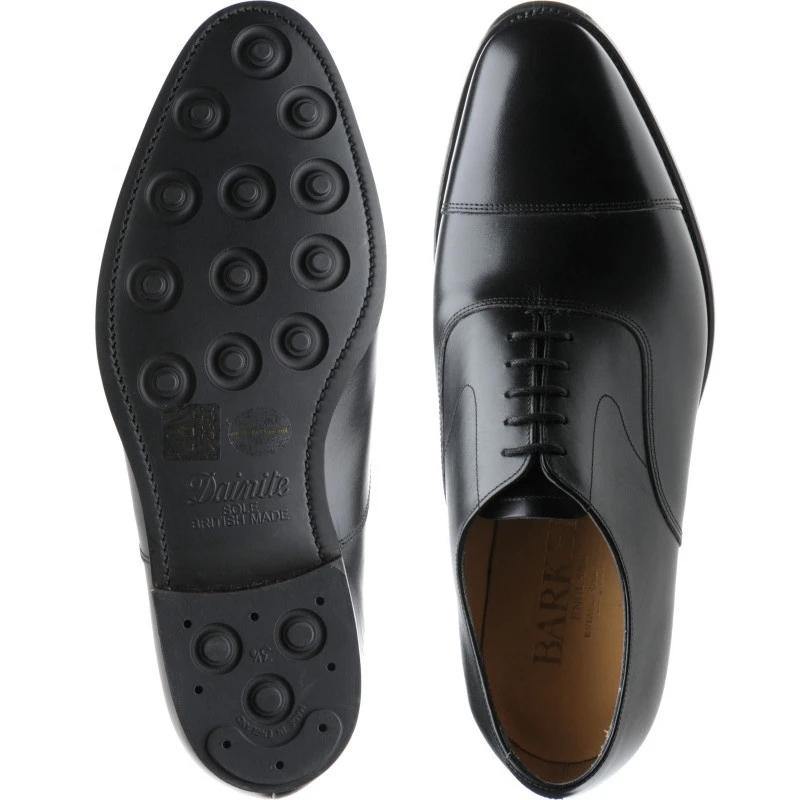 Barker Malvern is a sleek Oxford toe-cap shoe on a Goodyear welted Dainite rubber sole. |