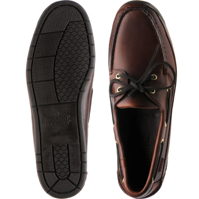 Classic boat shoe, advanced rubber non-slip soles with an EVA heel cup. Genuine moccasin construction wraps the foot in a single piece of leather creating a fit that’s uniquely your own. We sell the Sebago W/R fit that equates to UK Medium F fit. |